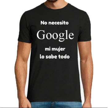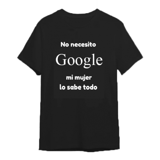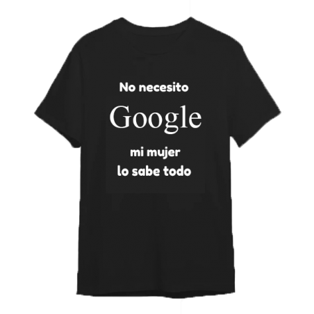 Camiseta Negra Personalizada "No necesito Google mi mujer lo sabe todo"