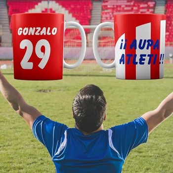 Diseñada para verdaderos fanáticos, esta taza no es solo un objeto: es una extensión de tu amor por el fútbol. Personalízala con tu nombre y número favorito para convertirla en una pieza única, hecha solo para ti.