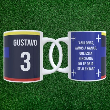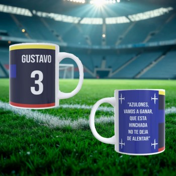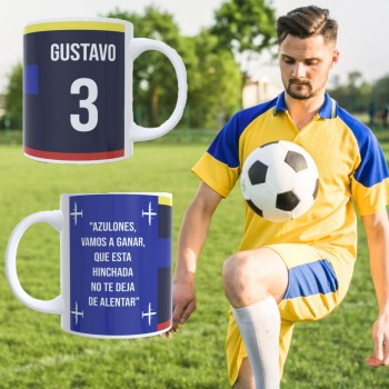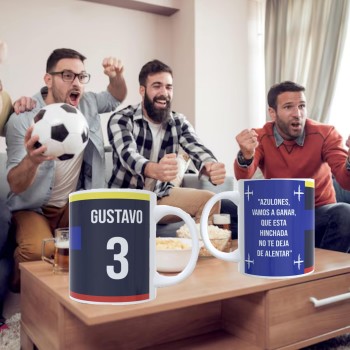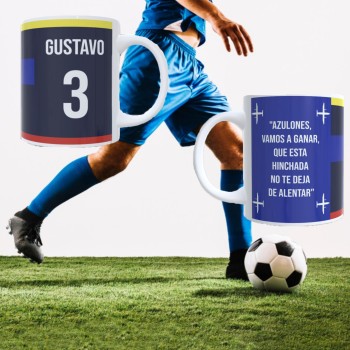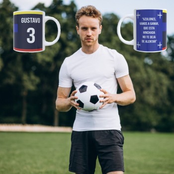 Diseñada para verdaderos fanáticos, esta taza no es solo un objeto: es una extensión de tu amor por el fútbol. Personalízala con tu nombre y número favorito para convertirla en una pieza única, hecha solo para ti.