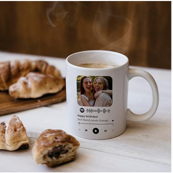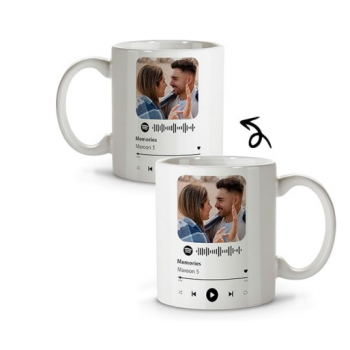 Este producto debe ser personalizado antes de añadirse a la cesta.☕ Taza de Cerámica Personalizada “Spotify” – Convierte tu foto y tu tema musical preferido en una taza única y llena de significado. Inspirada en el diseño de Spotify, esta taza combina tu imagen con el título y artista que más te representan.