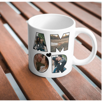 Taza de Cerámica Personalizada "AMOR" con 4 Fotos